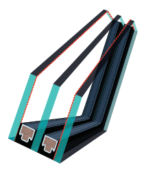 - Składa się z trzech szyb hartowanych o grubości 4 mm. Szyby skrajne wykonane są ze szkła niskoemisyjnego. Obie przestrzenie międzyszybowe wynoszą po 10 mm i wypełnione są gazem szlachetnym - kryptonem. W szybie zespolonej superenergooszczędnej zastosowano ciepłą ramkę dystansową TGI wykonaną z tworzywa sztucznego.