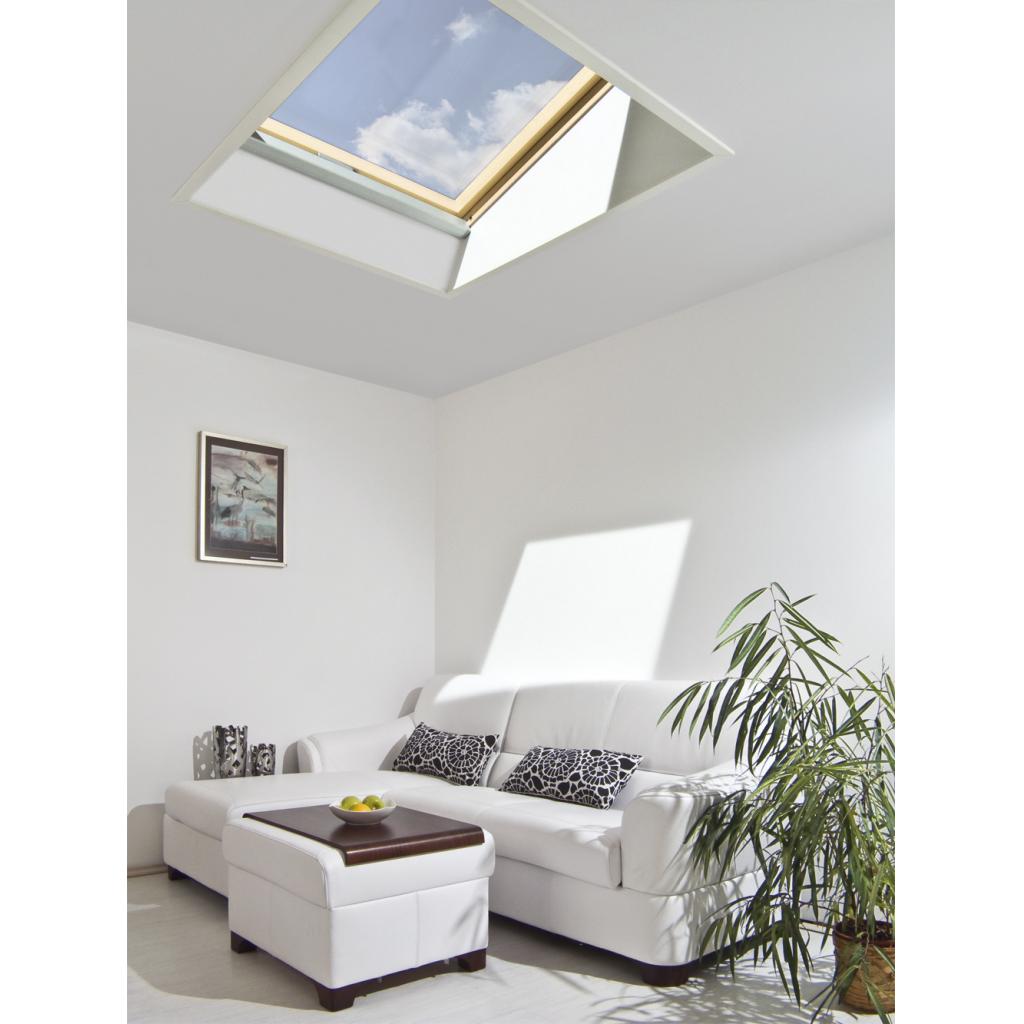 System Płaskich Dachów stosowany jest najczęściej do doświetlenia światłem naturalnym hal przemysłowych, magazynów przy zachowaniu dobrych parametrów termoizolacyjnych. Wykorzystywany jest również przy adaptacji poddasza w budynkach o małym kącie nachylenia. Standardowo przystosowany jest do montażu pojedynczego okna w połaci dachu. Można je również montować w szeregu poziomym, przy zachowaniu odstępu min. 30 cm. Przeznaczony jest do pokryć płaskich.